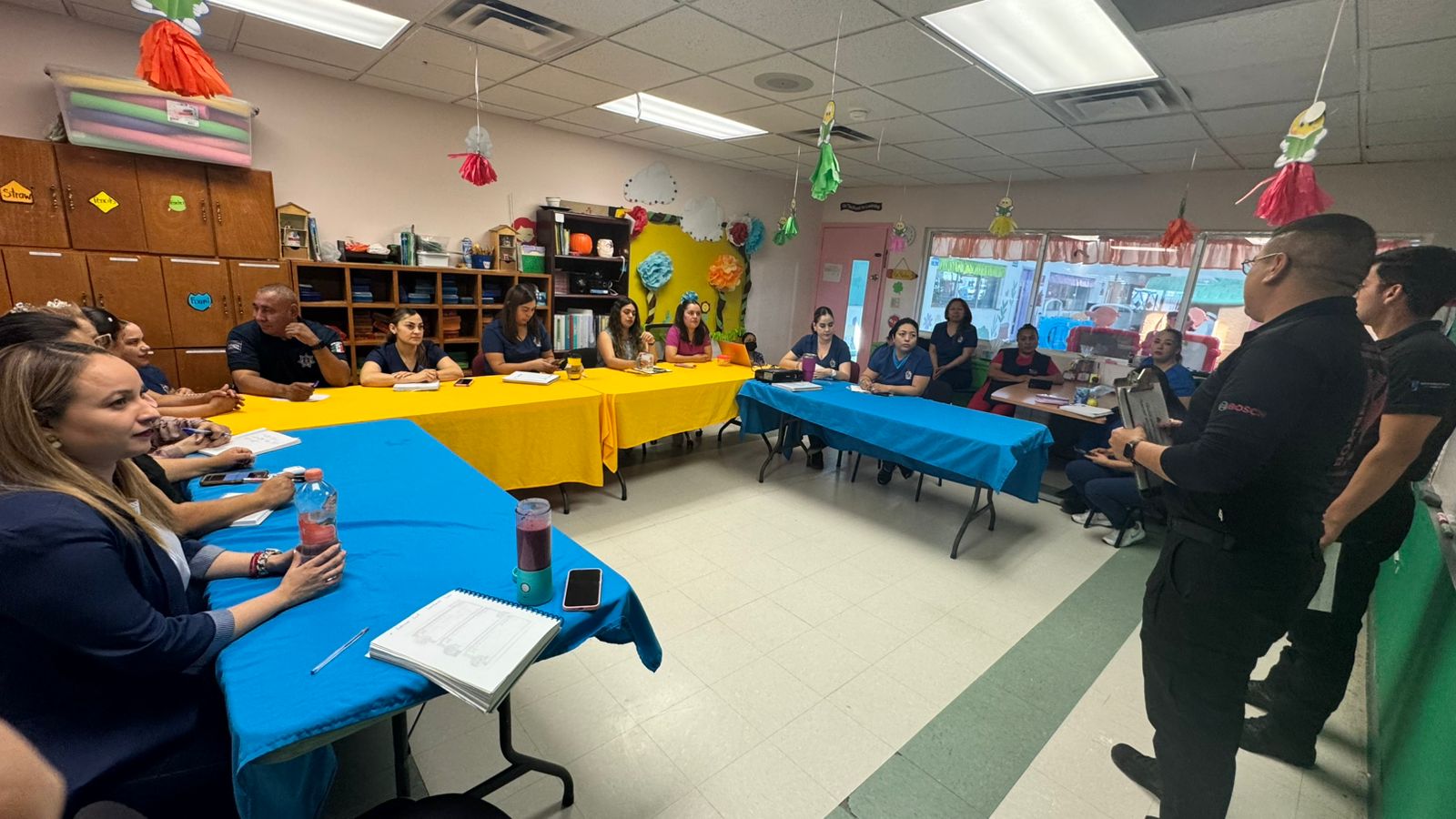 Comentó que durante la capacitación se abordaron temas fundamentales como la protección de las y los niños de forma rápida y segura; cuál debe de ser la reacción de todas y todos para mantener la calma, así como de qué forma se tiene que actuar para evitar el pánico y asegurar una evacuación eficiente.