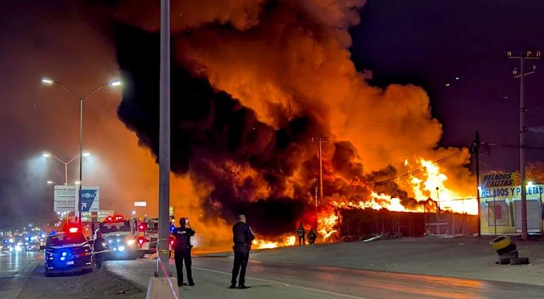Fue minutos antes de las 8 de la noche, cuando se reportó a los números de emergencia sobre el incendio en una bodega de tarimas junto a las instalaciones de la pizzería.