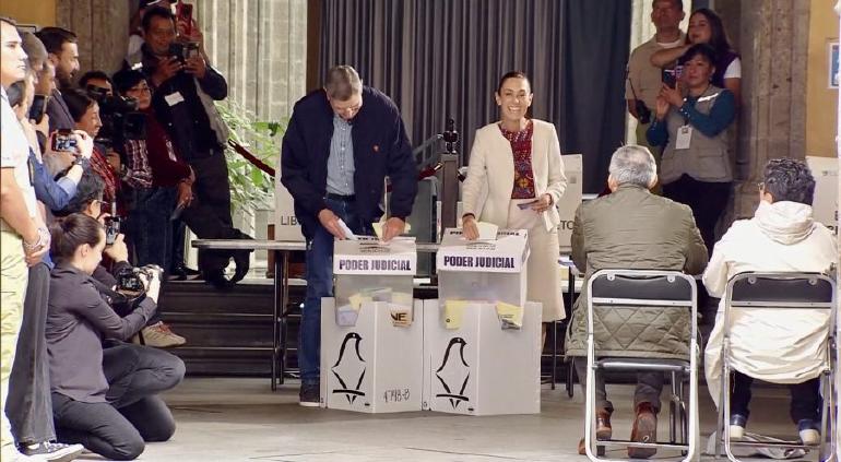 “¡Que viva la democracia!”, exclamó la presidenta de México, Claudia Sheinbaum Pardo, tras emitir su voto este domingo en la primera elección democrática del Poder Judicial en la historia del país.