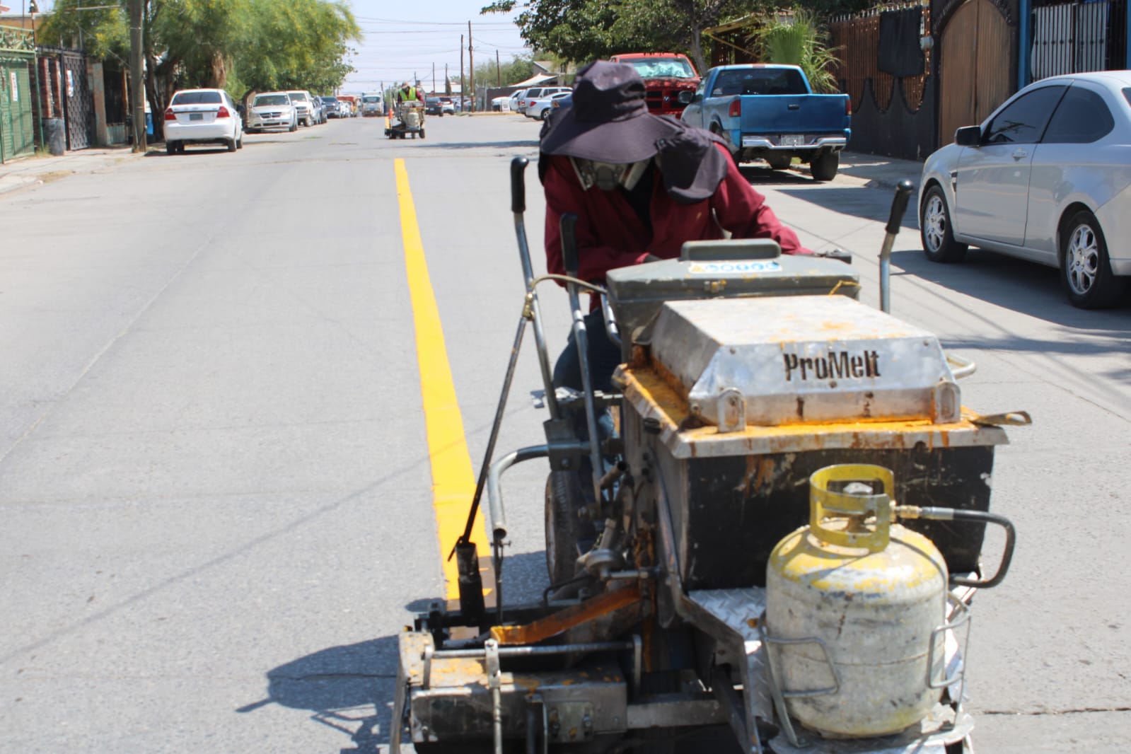 También se pintó la división de carriles sobre la calle Grosella, donde se delimitó el eje central de la vialidad, desde la calle Morelia hasta la avenida Manuel J. Clouthier.
