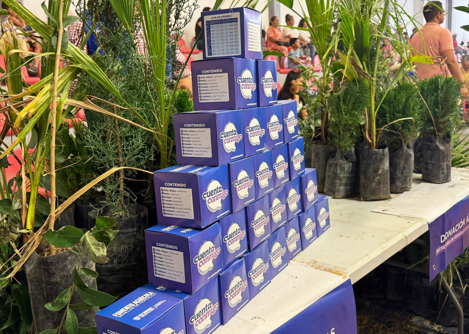 Acudieron al evento más de 600 personas, quienes accedieron a vacunación contra el sarampión, entrega de despensas, donación de lentes adaptados, reparto de diversas especies de árboles y trámites de diversas dependencias estatales.