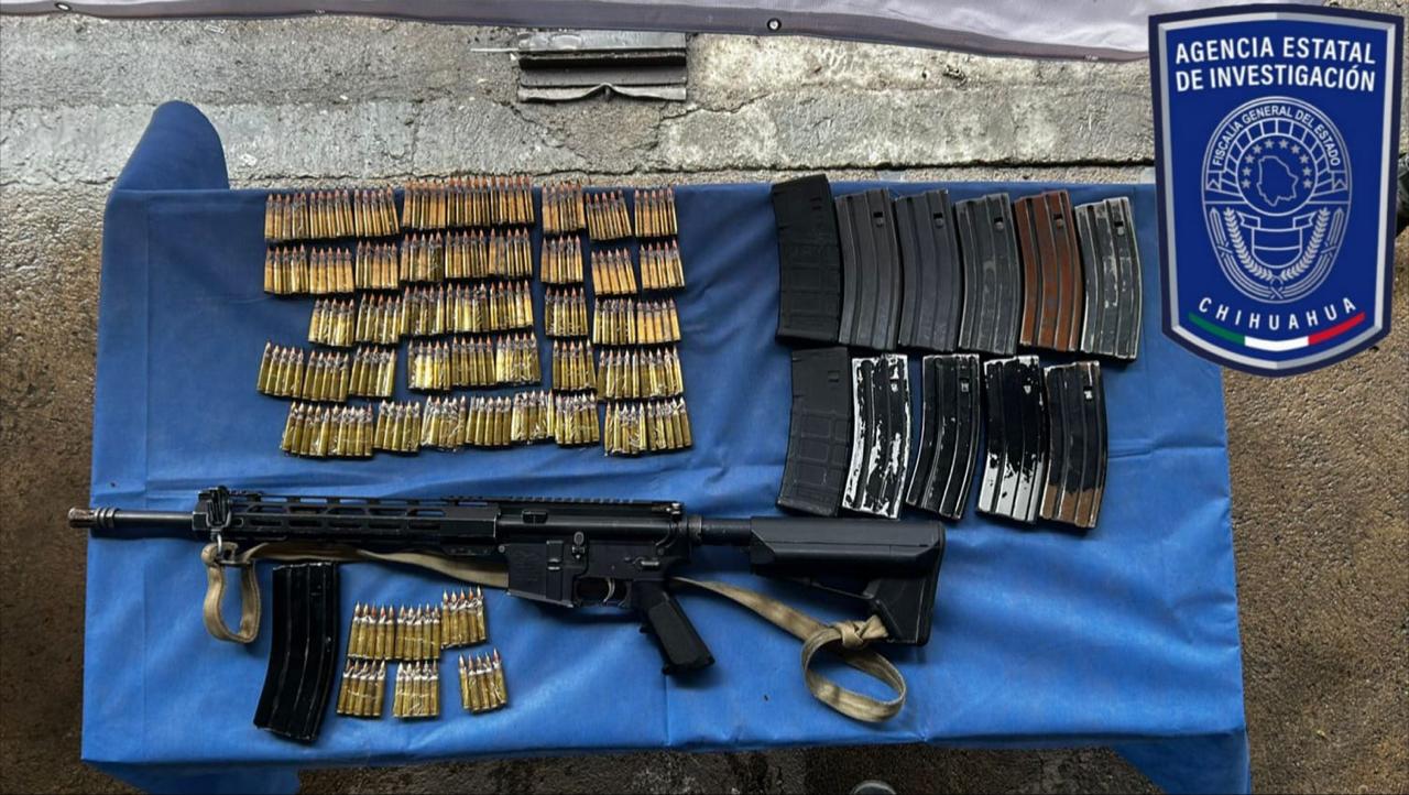 En Operativo de la Célula BOI efectuado hoy sábado en Guadalupe y Calvo, se ubicó un punto de halconeo en la parte alta de un cerro y entre la maleza encontraron un arma de fuego tipo fusil, cargadores y cientos de municiones.