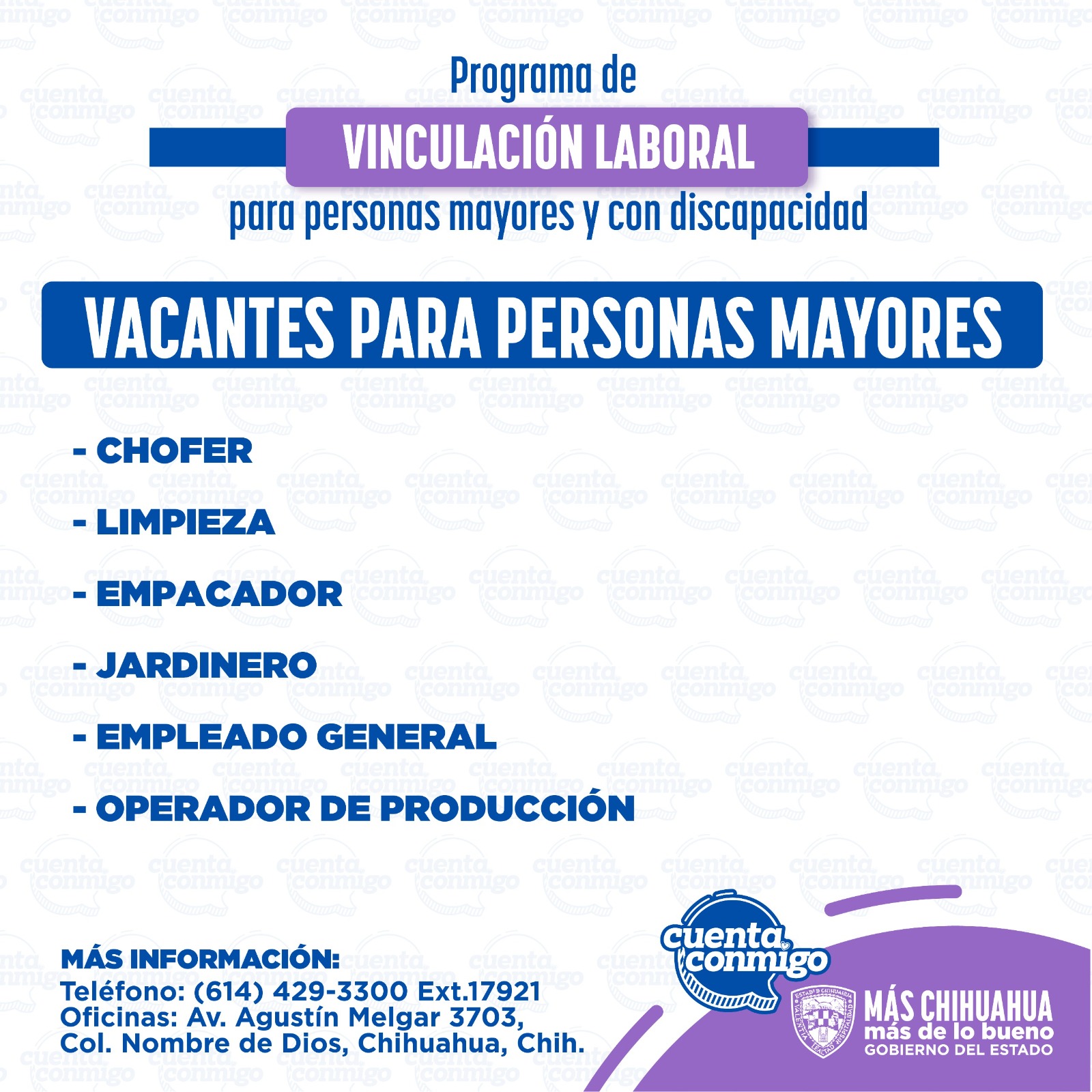Las personas interesadas en obtener más información sobre estas vacantes pueden comunicarse al teléfono (614) 429-33-00, extensión 17921, para recibir acompañamiento en sus entrevistas por parte del equipo de la Dirección de Grupos Vulnerables.