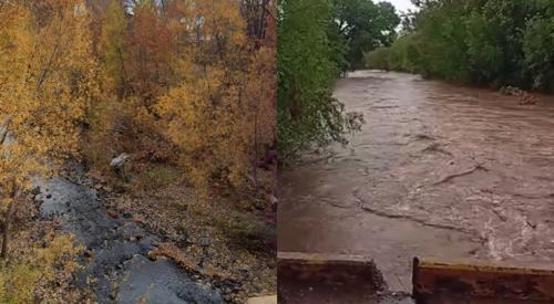 Pobladores de Colonia Juárez (municipio de Casas Grandes), compartieron imágenes de cómo amaneció el río Piedras Verdes tras las fuertes lluvias.