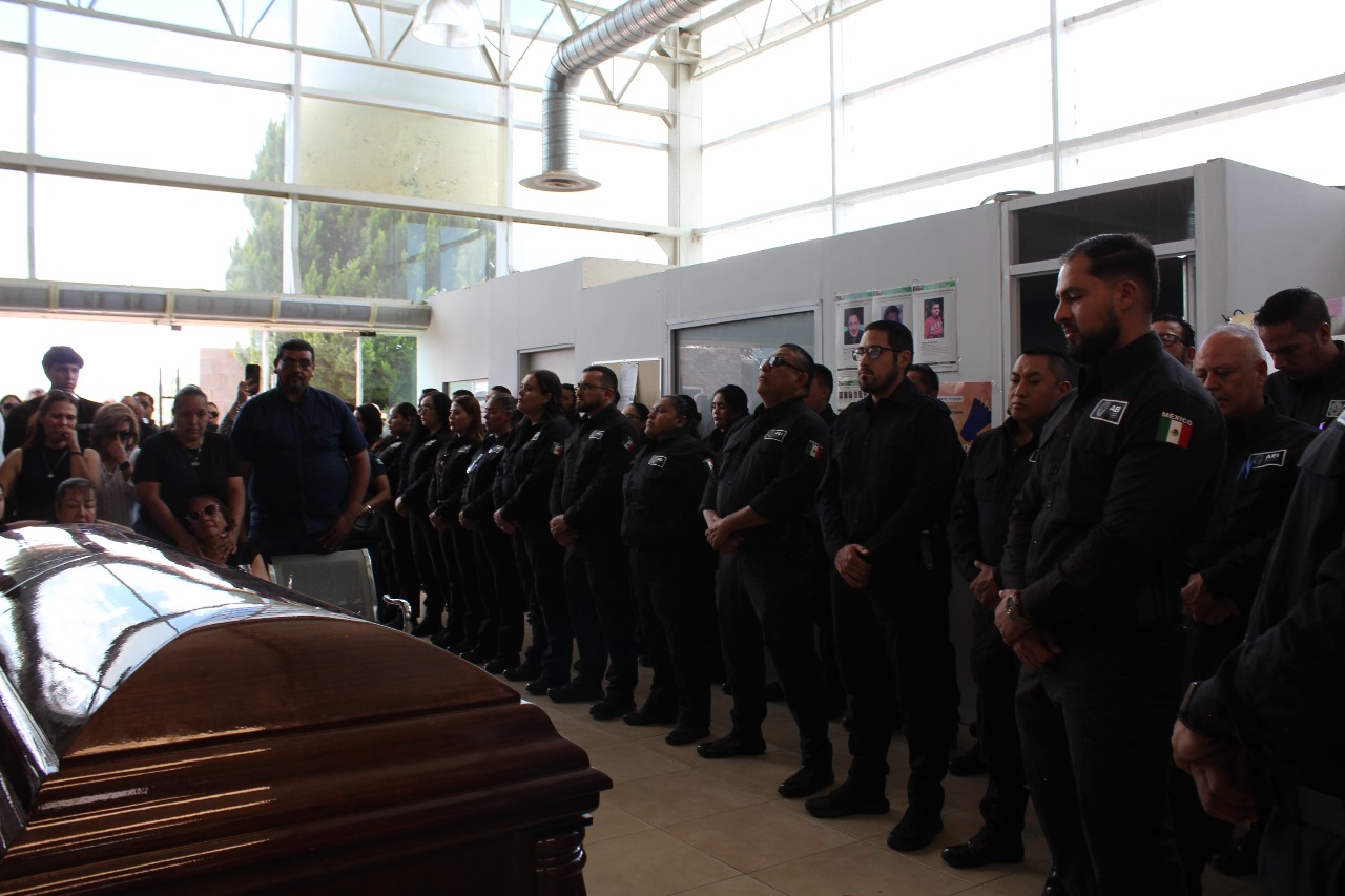 Custodiado por vehículos oficiales, el cortejo fúnebre arribó a las instalaciones de la Fiscalía de Distrito, en donde se realizó el homenaje encabezado por el Fiscal de Distrito, Guillermo Hinojos Hinojos, acompañado por los coordinadores de la AEI en la región sur: José Antonio Gómez García y José Manuel Castillo Perales; agentes investigadores, ministerios públicos y todo el personal sustantivo de la dependencia.