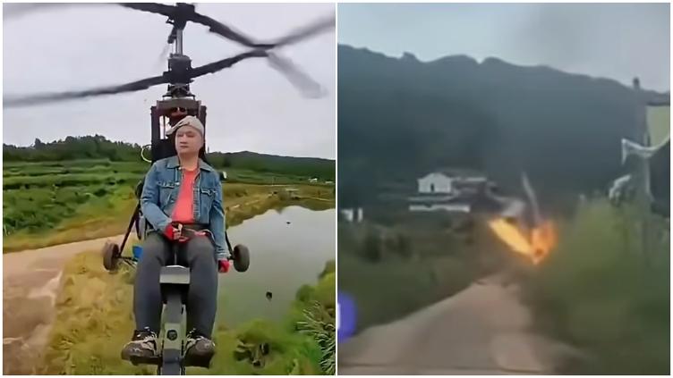 Los hechos se dieron en el condado de Jiange en el centro de China, en donde el influencer Tang Feiji decidió hacer una transmisión en vivo de él probando un helicóptero ultraligero que fabricó.