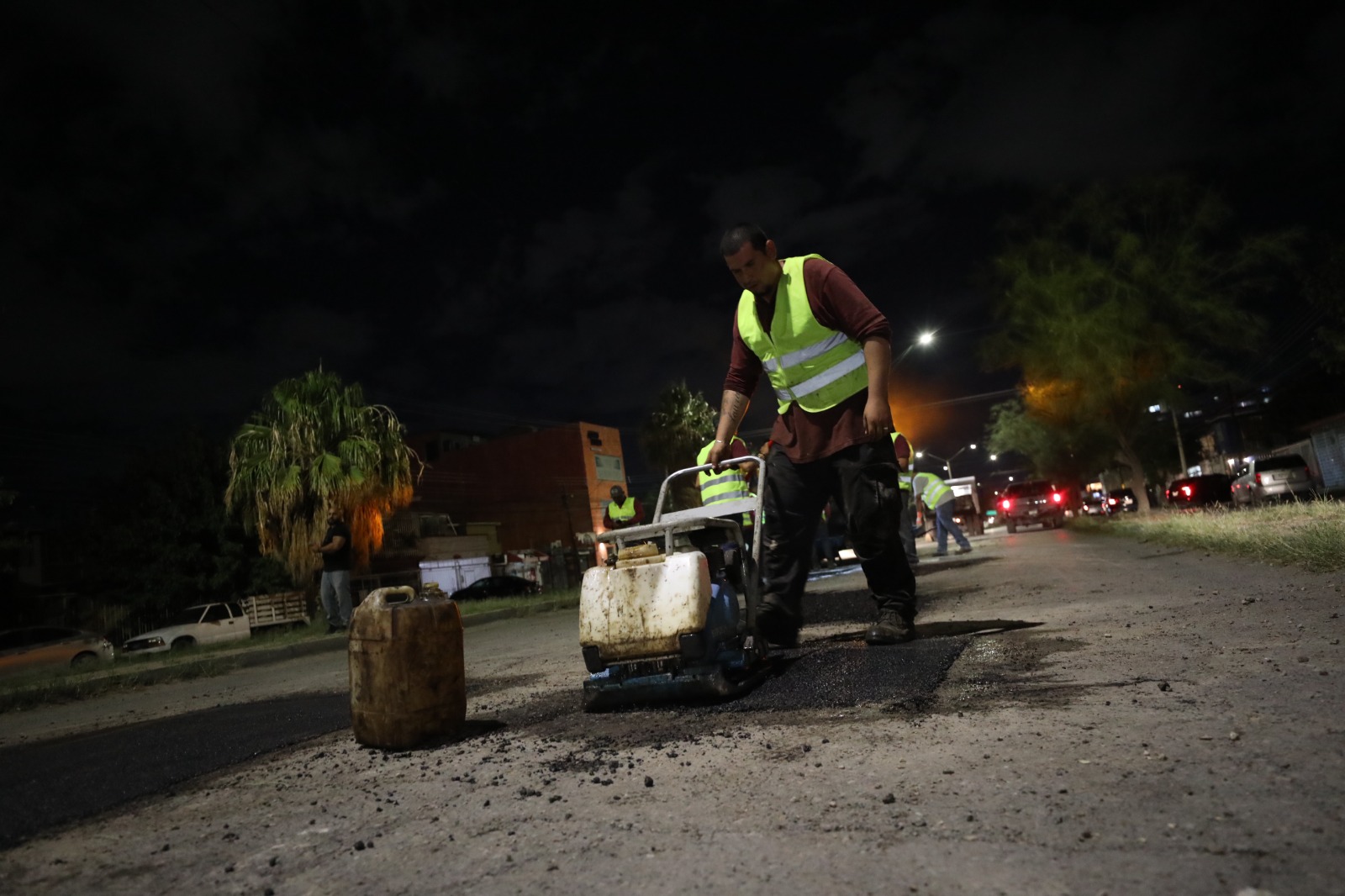 Desde el arranque del programa, las cuadrillas municipales han reparado 2 mil 448 baches, equivalentes a 12 mil 741 metros cuadrados de superficie atendida, en jornadas diurnas y nocturnas, en vialidades estratégicas como Lote Bravo, Manuel J. Clouthier, De las Torres, Valentín Fuentes, Los Aztecas, Adolfo López Mateos, Oscar Flores y Eje Vial Juan Gabriel, sólo por mencionar algunas.