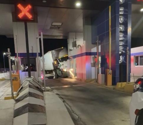 El conductor del tráiler, presuntamente dormido al volante, perdió el control del vehículo. Esto provocó que el tráiler subiera al camellón central e impactara directamente la caseta de cobro, causando daños materiales aún por cuantificar.