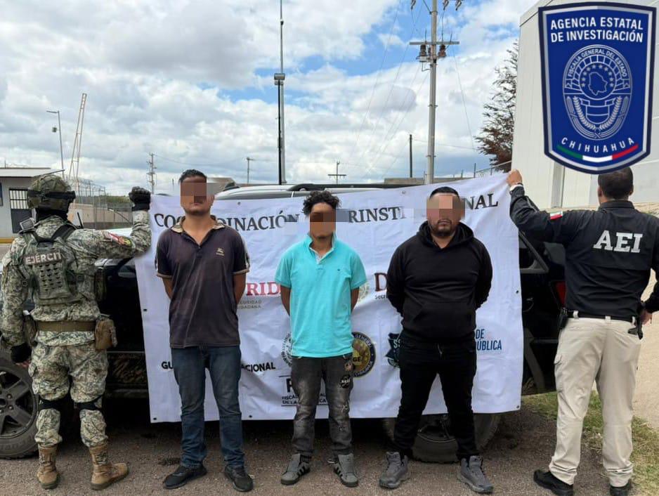 La detención de Jesús Manuel M. B., de 37 años de edad, Jesús Leonardo T. C., de 19 años de edad y Luis Ángel S. R., de 19 de años, se llevó a cabo el cruce del periférico Luis Donaldo Colosio y la calle Picacho, de la colonia San Uriel.