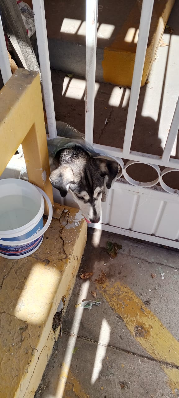 Elementos de la Dirección General de Protección Civil rescataron esta tarde un perrito que estaba atrapado en el barandal de una vivienda en la colonia Córdova Américas.