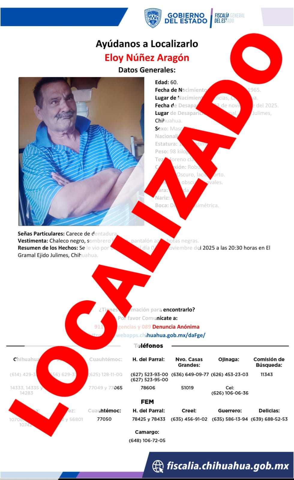 La Fiscalía General del Estado refrenda su compromiso de realizar las acciones necesarias para dar con el paradero de todas las personas con reporte de ausencia y/o no localización, a fin de dar certeza a sus familias.