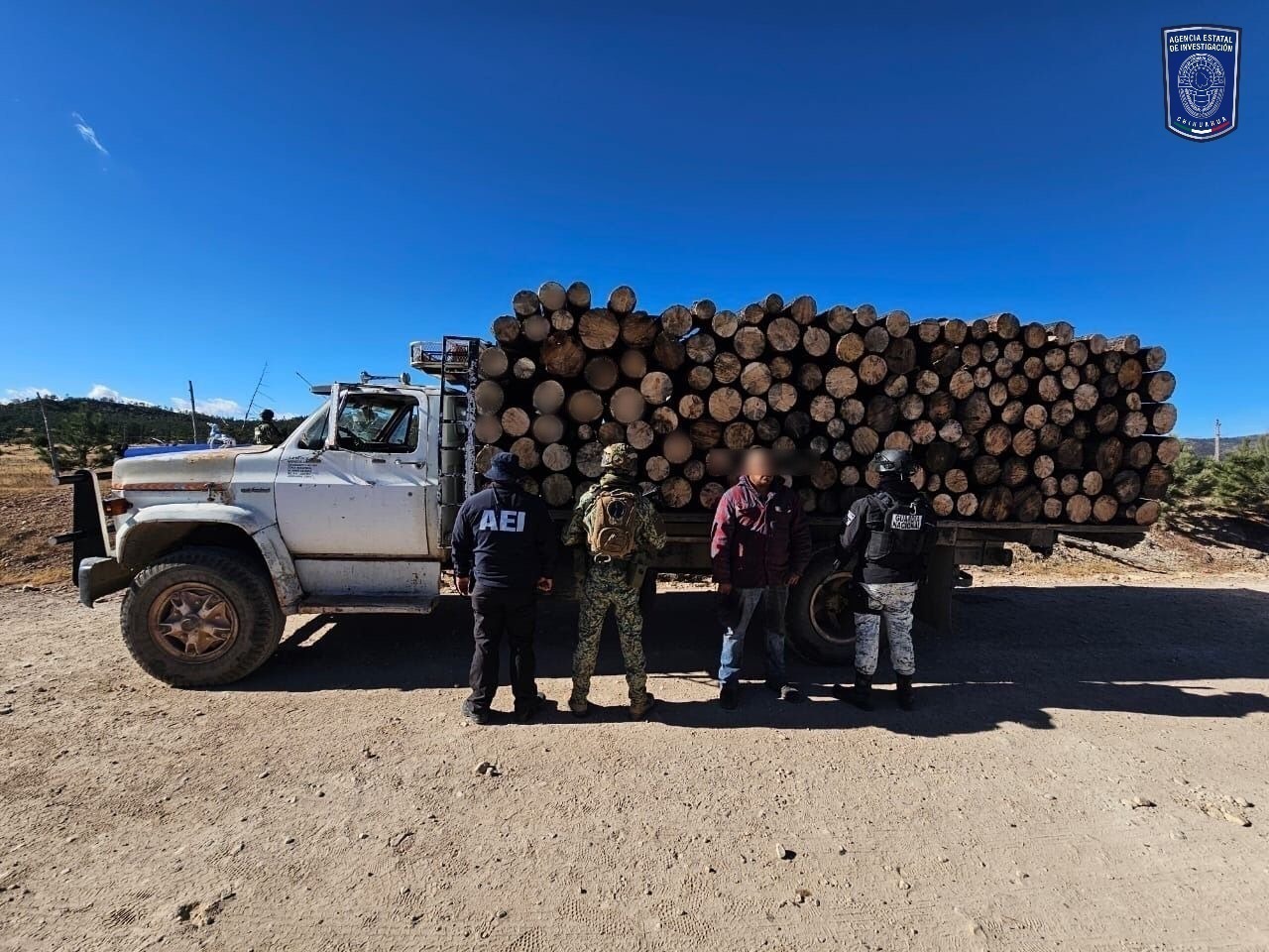 El operativo inter institucional que atiende delitos contra el medio ambiente, detuvo al chofer de un camión que trasportaba 170 trozos de madera de pino en rollo sin acreditar su legal procedencia, en el municipio de Bocoyna.