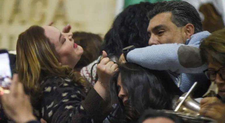Sin embargo, la morenista Yuriri Ayala, secretaria de la Mesa Directiva, jaló del brazo a la panista Daniela Álvarez. Ayala la ignoró y continuó jalándola con fuerza, hasta que la panista le dio un codazo.