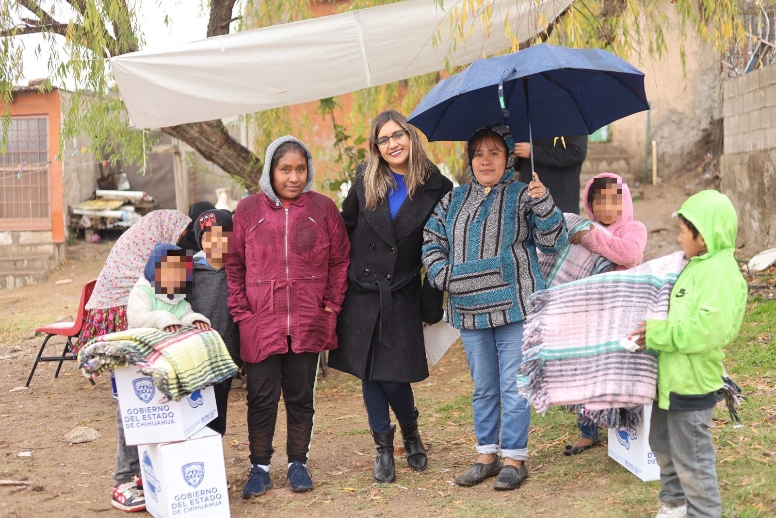 El Gobierno del Estado, a través de la Secretaría de Pueblos y Comunidades Indígenas (SPyCI) llevó paquetes de cobijas y hule, a familias rarámuri de la colonia Desarrollo Urbano.