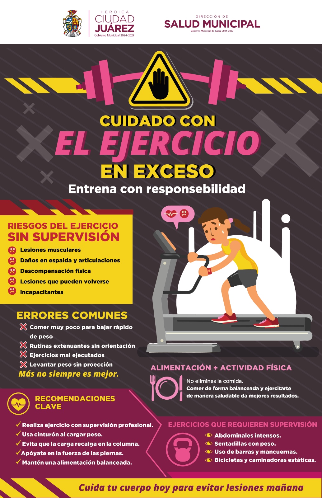 Tomando como base que en el mes de enero muchas personas inician rutinas de ejercicio como propósito de Año Nuevo, la Dirección de Salud Municipal exhortó a la ciudadanía a evitar el ejercicio en exceso y sin la debida supervisión, ya que estas prácticas pueden provocar lesiones y afectaciones a la salud a corto y largo plazo.