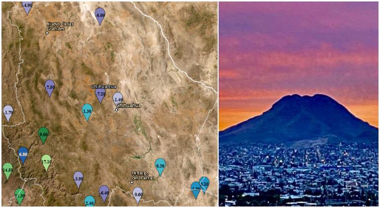 Destaca la marca de la ciudad de Chihuahua de -1.4 a las 6.40 a.m., lo cual es poco frecuente.